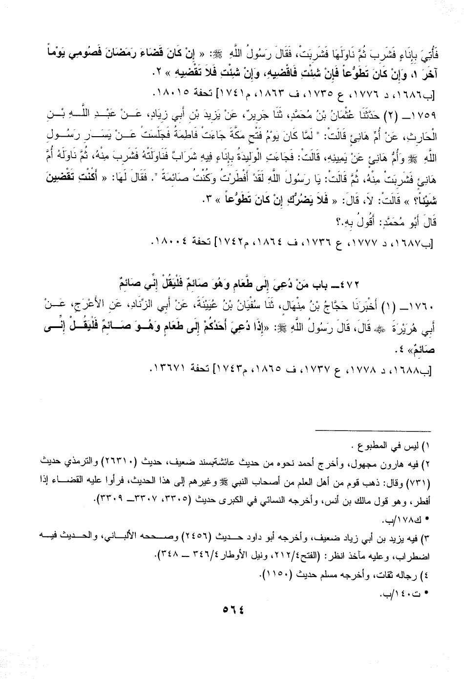1760 - (1) أَخْبَرَنَا حَجَّاجُ بْنُ مِنْهَالٍ، ثَنَا سُفْيَانُ بْنُ عُيَيْنَةَ، عَنْ أَبِي الزِّنَادِ، عَنِ الأَعْرَجِ، عَنْ أَبِي هُرَيْرَةَ - رضي الله عنه - قَالَ، قَالَ رَسُولُ اللَّهِ - صلى الله عليه وسلم -: «إِذَا دُعِيَ أَحَدُكُمْ إِلَى طَعَامٍ وَهُوَ صَائِمٌ فَلْيَقُلْ إِنِّى صَائِمٌ» (¬4).