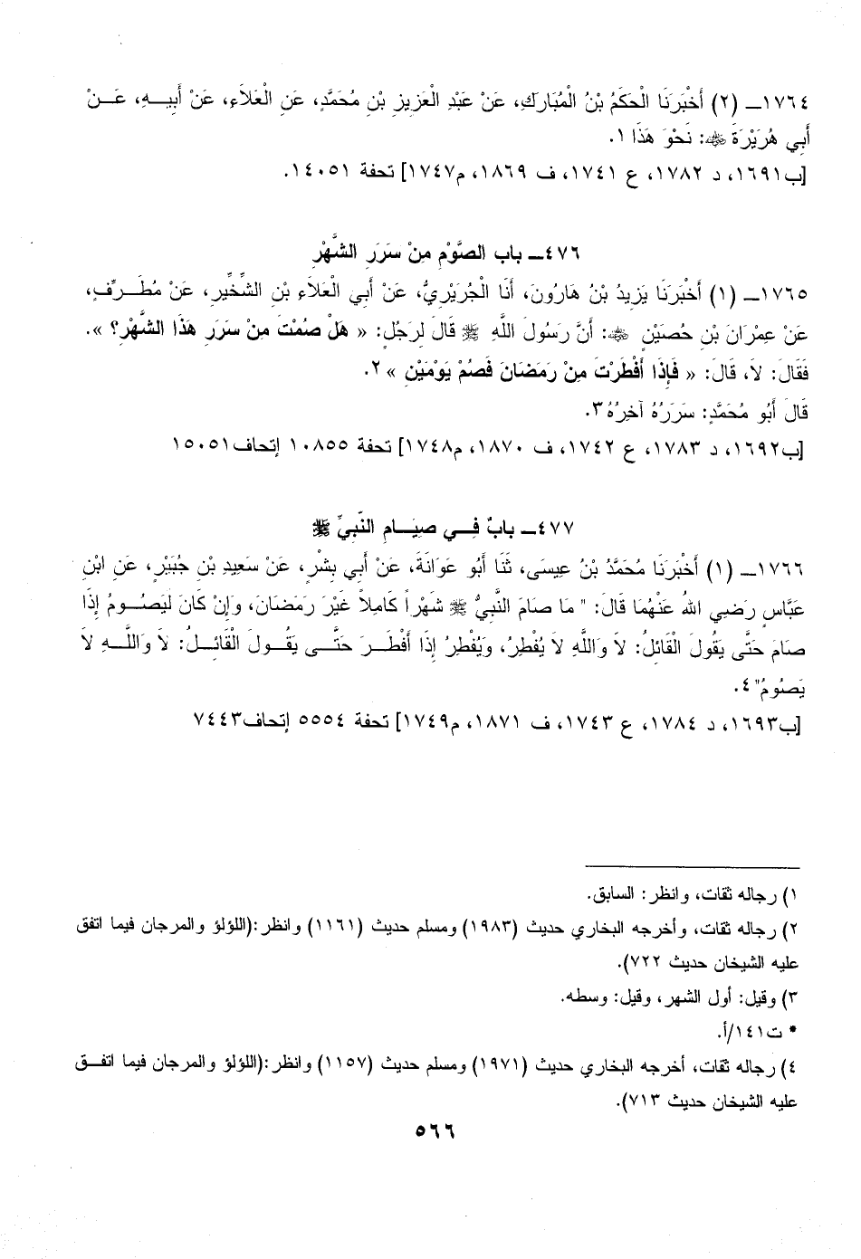 (¬4) رجاله ثقات، أخرجه البخاري حديث (1971) ومسلم حديث (1157) وانظر: (اللؤلؤ والمرجان فيما اتفق عليه الشيخان حديث 713).