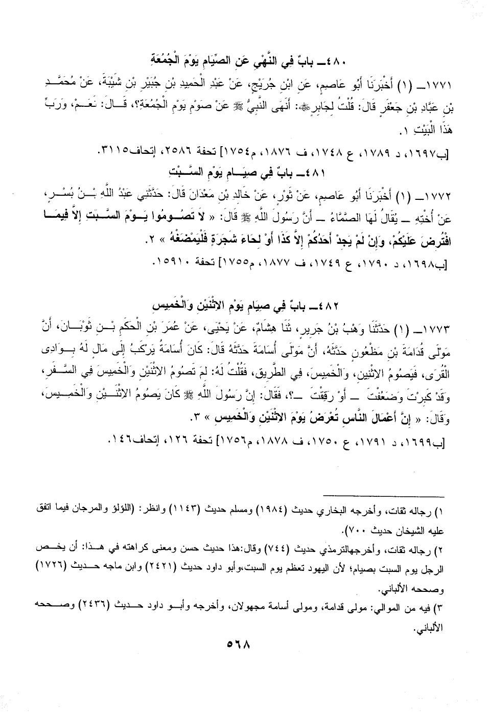 481 - بابٌ فِي صِيَامِ يَوْمِ السَّبْتِ