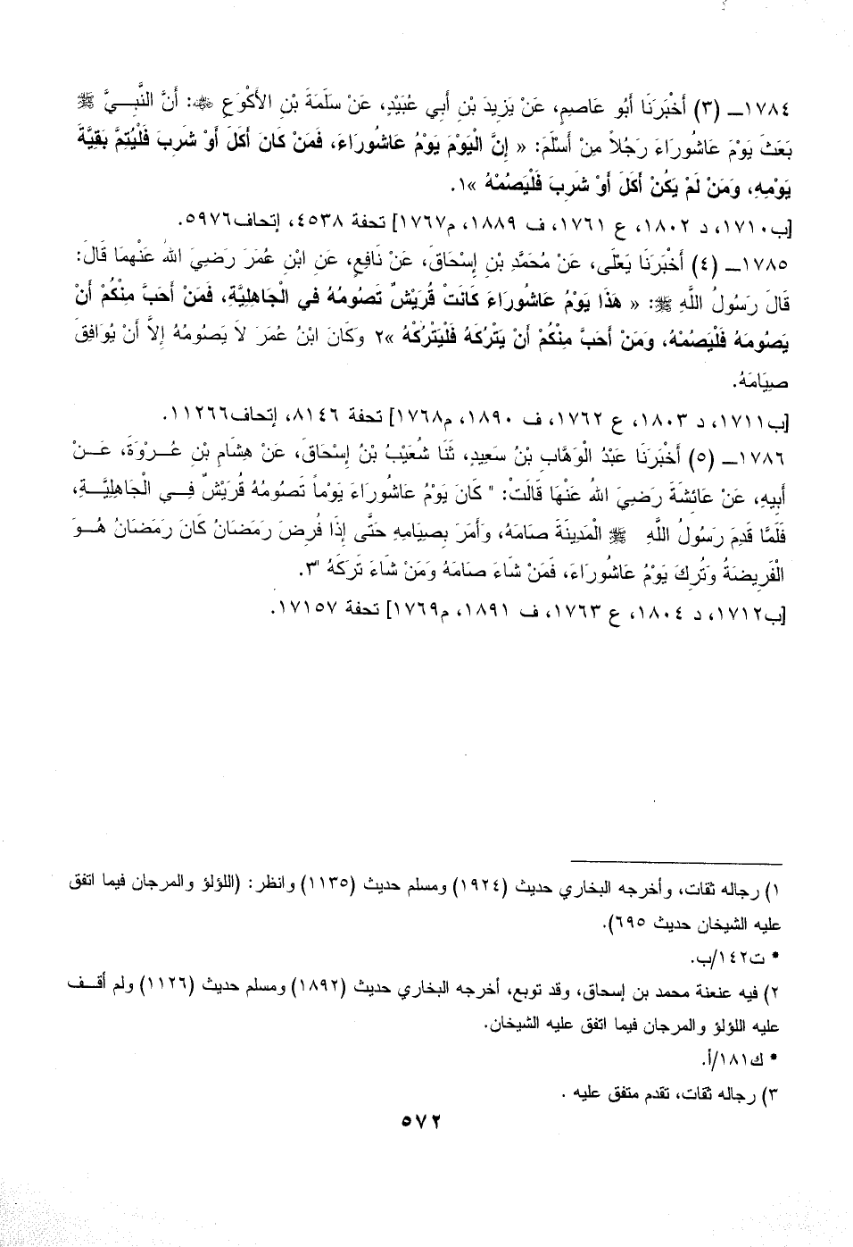 1784 - (3) أَخْبَرَنَا أَبُو عَاصِمٍ، عَنْ يَزِيدَ بْنِ أَبِي عُبَيْدٍ، عَنْ سَلَمَةَ بْنِ الأَكْوَعِ - رضي الله عنه -: أَنَّ النَّبِيَّ - صلى الله عليه وسلم - بَعَثَ يَوْمَ عَاشُورَاءَ رَجُلاً مِنْ أَسْلَمَ: «إِنَّ الْيَوْمَ يَوْمُ عَاشُورَاءَ، فَمَنْ كَانَ أَكَلَ أَوْ شَرِبَ فَلْيُتِمَّ بَقِيَّةَ يَوْمِهِ، وَمَنْ لَمْ يَكُنْ أَكَلَ أَوْ شَرِبَ فَلْيَصُمْهُ» (¬1).