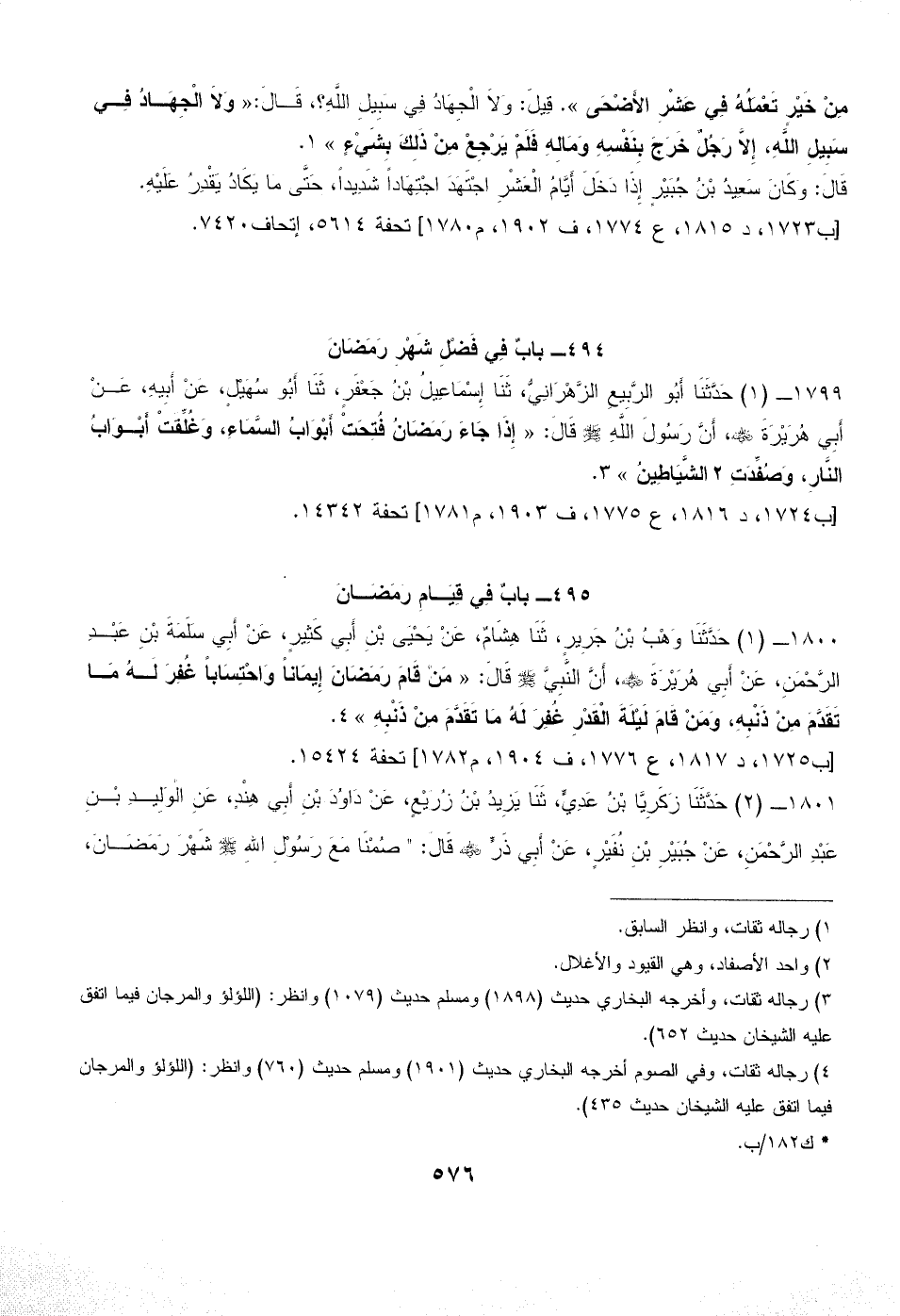 1799 - (1) حَدَّثَنَا أَبُو الرَّبِيعِ الزَّهْرَانِيُّ، ثَنَا إِسْمَاعِيلُ بْنُ جَعْفَرٍ، ثَنَا أَبُو سُهَيْلٍ، عَنْ أَبِيهِ، عَنْ أَبِي هُرَيْرَةَ - رضي الله عنه -، أَنَّ رَسُولَ اللَّهِ - صلى الله عليه وسلم - قَالَ: «إِذَا جَاءَ رَمَضَانُ فُتِحَتْ أَبْوَابُ السَّمَاءِ، وَغُلِّقَتْ أَبْوَابُ النَّارِ، وَصُفِّدَتِ (¬2) الشَّيَاطِينُ» (¬3).