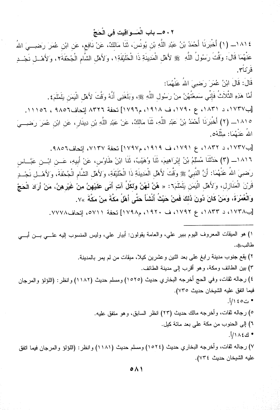 (¬7) رجاله ثقات، وأخرجه البخاري حديث (1524) ومسلم حديث (1181) وانظر: (اللؤلؤ والمرجان فيما اتفق عليه الشيخان حديث 734).