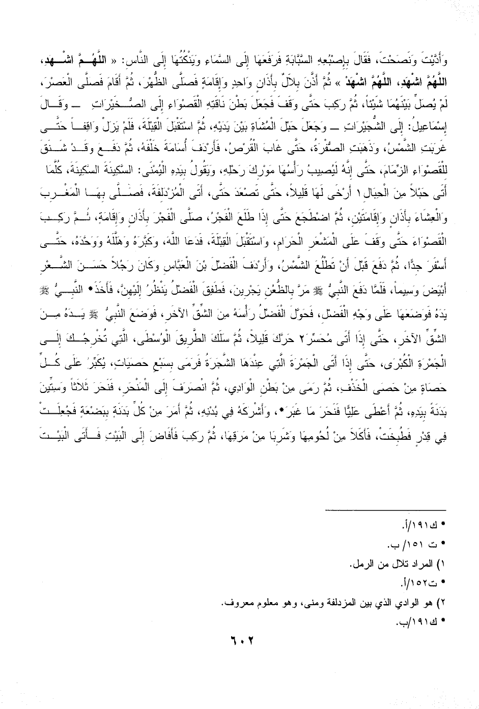 وَأَدَّيْتَ وَنَصَحْتَ، فَقَالَ بِإِصْبُعِهِ السَّبَّابَةِ فَرَفَعَهَا إِلَى السَّمَاءِ وَيَنْكُتُهَا إِلَى النَّاسِ: «اللَّهُمَّ اشْهَدِ، اللَّهُمَّ اشْهَدِ، اللَّهُمَّ اشْهَدْ» ثُمَّ أَذَّنَ بِلاَلٌ بِأَذَانٍ وَاحِدٍ وَإِقَامَةٍ فَصَلَّى الظُّهْرَ، ثُمَّ أَقَامَ فَصَلَّى الْعَصْرَ، لَمْ يُصَلِّ بَيْنَهُمَا شَيْئاً، ثُمَّ رَكِبَ حَتَّى وَقَفَ فَجَعَلَ بَطْنَ نَاقَتِهِ الْقَصْوَاءِ إِلَى الصُّخَيْرَاتِ - وَقَالَ إِسْمَاعِيلُ: إِلَى الشُّجَيْرَاتِ - وَجَعَلَ حَبْلَ الْمُشَاةِ بَيْنَ يَدَيْهِ، ثُمَّ اسْتَقْبَلَ الْقِبْلَةَ، فَلَمْ يَزَلْ وَاقِفاً حَتَّى غَرَبَتِ الشَّمْسُ، وَذَهَبَتِ الصُّفْرَةُ، حَتَّى غَابَ الْقُرْصُ، فَأَرْدَفَ أُسَامَةَ خَلْفَهُ، ثُمَّ دَفَعَ وَقَدْ شَنَقَ لِلْقَصْوَاءِ الزِّمَامَ، حَتَّى إِنَّهُ لَيُصِيبُ رَأْسُهَا مَوْرِكَ رَحْلِهِ، وَيَقُولُ بِيَدِهِ الْيُمْنَى: السَّكِينَةَ السَّكِينَةَ، كُلَّمَا أَتَى حَبْلاً مِنَ الْحِبَالِ (¬1) أَرْخَى لَهَا قَلِيلاً، حَتَّى تَصْعَدَ حَتَّى، أَتَى الْمُزْدَلِفَةَ، فَصَلَّى بِهَا الْمَغْرِبَ وَالْعِشَاءَ بِأَذَانٍ وَإِقَامَتَيْنِ، ثُمَّ اضْطَجَعَ حَتَّى إِذَا طَلَعَ الْفَجْرُ، صَلَّى الْفَجْرَ بِأَذَانٍ وَإِقَامَةٍ، ثُمَّ رَكِبَ الْقَصْوَاءَ حَتَّى وَقَفَ عَلَى الْمَشْعَرِ الْحَرَامِ، وَاسْتَقْبَلَ الْقِبْلَةَ، فَدَعَا اللَّهَ، وَكَبَّرَهُ وَهَلَّلَهُ وَوَحَّدَهُ، حَتَّى أَسْفَرَ جِدًّا، ثُمَّ دَفَعَ قَبْلَ أَنْ تَطْلُعَ الشَّمْسُ، وَأَرْدَفَ الْفَضْلَ بْنَ الْعَبَّاسِ وَكَانَ رَجُلاً حَسَنَ الشَّعْرِ أَبْيَضَ وَسِيماً، فَلَمَّا دَفَعَ النَّبِيُّ - صلى الله عليه وسلم - مَرَّ بِالظُّعُنِ يَجْرِينَ، فَطَفِقَ الْفَضْلُ يَنْظُرُ إِلَيْهِنَّ، فَأَخَذَ* النَّبِيُّ - صلى الله عليه وسلم - يَدَهُ فَوَضَعَهَا عَلَى وَجْهِ الْفَضْلِ، فَحَوَّلَ الْفَضْلُ رَأْسَهُ مِنَ الشِّقِّ الآخَرِ، فَوَضَعَ النَّبِيُّ - صلى الله عليه وسلم - يَدَهُ مِنَ الشِّقِّ الآخَرِ، حَتَّى إِذَا أَتَى مُحَسِّرَ (¬2) حَرَّكَ قَلِيلاً، ثُمَّ سَلَكَ الطَّرِيقَ الْوُسْطَى، الَّتِي تُخْرِجُكَ إِلَى الْجَمْرَةِ الْكُبْرَى، حَتَّى إِذَا أَتَى الْجَمْرَةَ الَّتِي عِنْدَهَا الشَّجَرَةُ فَرَمَى بِسَبْعِ حَصَيَاتٍ، يُكَبِّرُ عَلَى كُلِّ حَصَاةٍ مِنْ حَصَى الْخَذْفِ، ثُمَّ رَمَى مِنْ بَطْنِ الْوَادِي، ثُمَّ انْصَرَفَ إِلَى الْمَنْحَرِ، فَنَحَرَ ثَلاَثاً وَسِتِّينَ بَدَنَةً بِيَدِهِ، ثُمَّ أَعْطَى عَلِيًّا فَنَحَرَ مَا غَبَرَ*، وَأَشْرَكَهُ فِي بُدْنِهِ، ثُمَّ أَمَرَ مِنْ كُلِّ بَدَنَةٍ بِبَضْعَةٍ فَجُعِلَتْ فِي قِدْرٍ فَطُبِخَتْ، فَأَكَلاَ مِنْ لُحُومِهَا وَشَرِبَا مِنْ مَرَقِهَا، ثُمَّ رَكِبَ فَأَفَاضَ إِلَى الْبَيْتِ فَأَتَى الْبَيْتَ