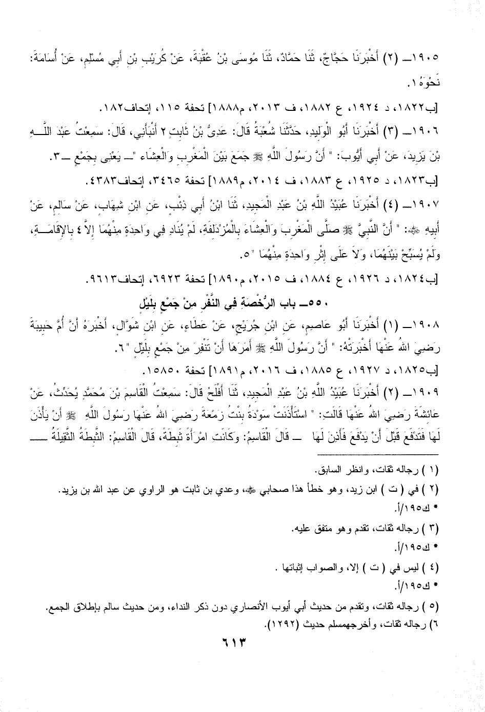 1905 - (2) أَخْبَرَنَا حَجَّاجٌ، ثَنَا حَمَّادٌ، ثَنَا مُوسَى بْنُ عُقْبَةَ، عَنْ كُرَيْبِ بْنِ أَبِي مُسْلِمٍ، عَنْ أُسَامَةَ: نَحْوَهُ (¬1).