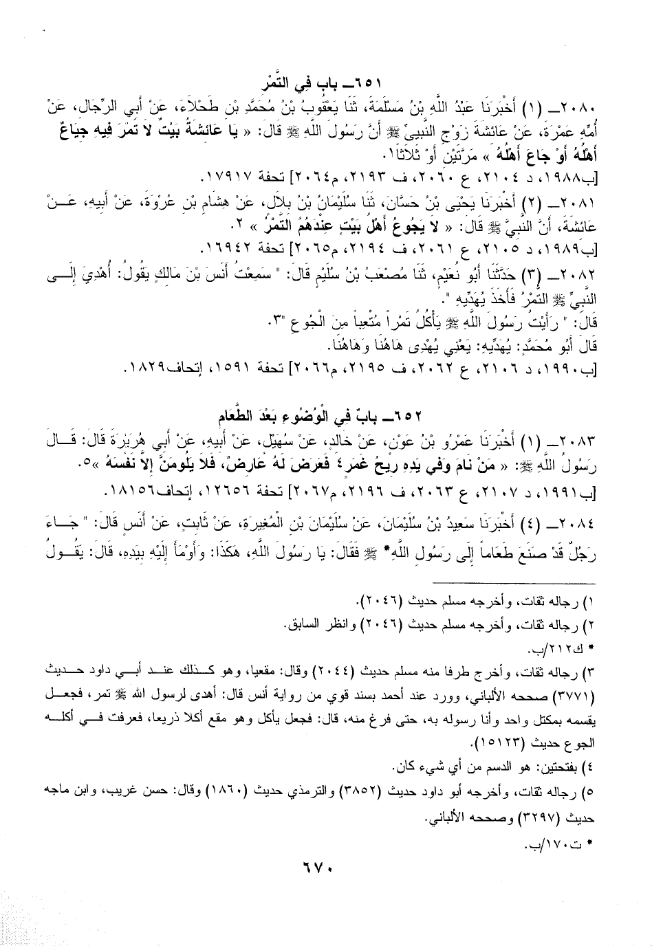2081 - (2) أَخْبَرَنَا يَحْيَى بْنُ حَسَّانَ، ثَنَا سُلَيْمَانُ بْنُ بِلاَلٍ، عَنْ هِشَامِ بْنِ عُرْوَةَ، عَنْ أَبِيهِ، عَنْ عَائِشَةَ، أَنَّ النَّبِيَّ - صلى الله عليه وسلم - قَالَ: «لاَ يَجُوعُ أَهْلُ بَيْتٍ عِنْدَهُمُ التَّمْرُ» (¬2).