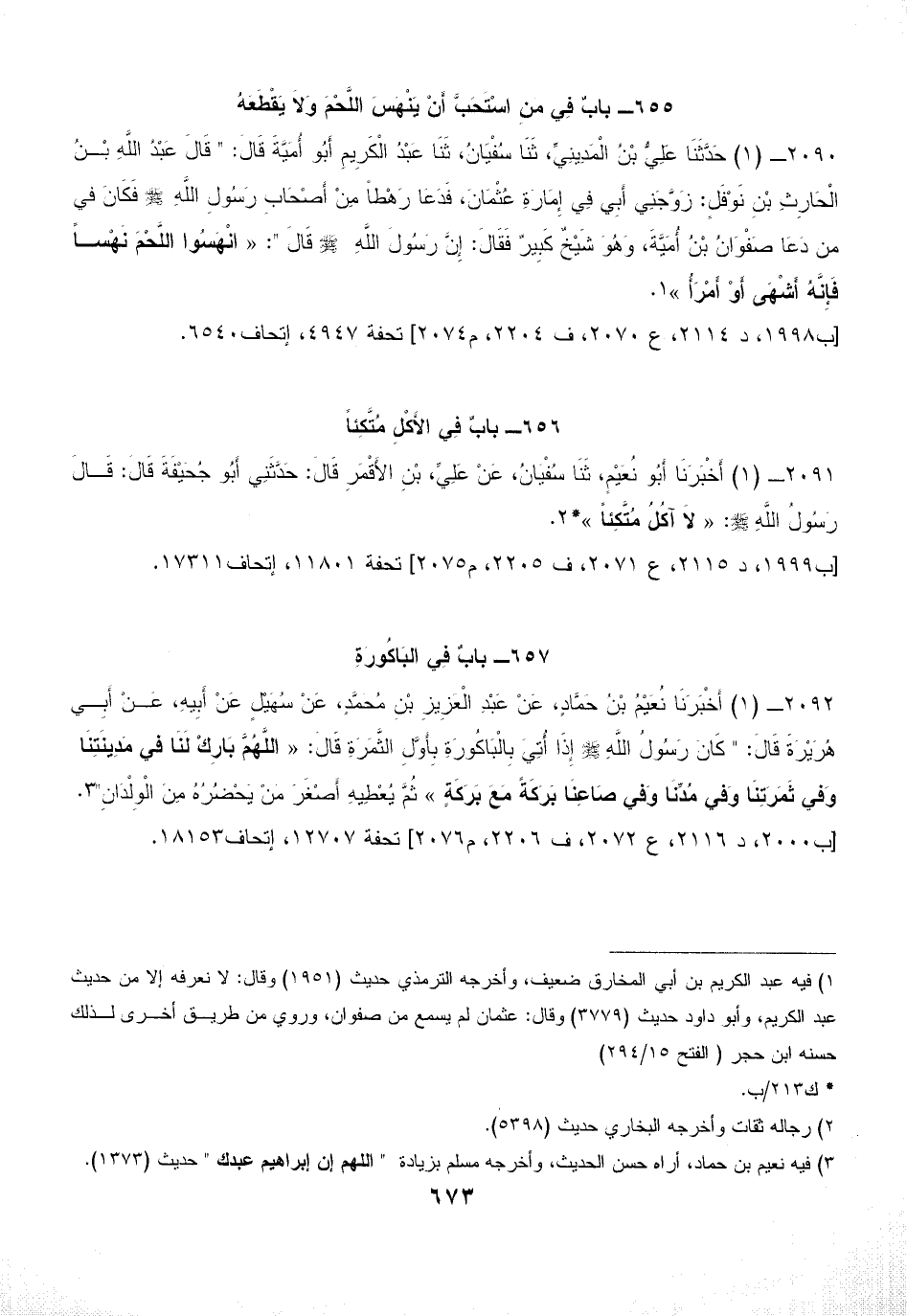 2092 - (1) أَخْبَرَنَا نُعَيْمُ بْنُ حَمَّادٍ، عَنْ عَبْدِ الْعَزِيزِ بْنِ مُحَمَّدٍ، عَنْ سُهَيْلٍ عَنْ أَبِيهِ، عَنْ أَبِي هُرَيْرَةَ قَالَ: " كَانَ رَسُولُ اللَّهِ - صلى الله عليه وسلم - إِذَا أُتِيَ بِالْبَاكُورَةِ بِأَوَّلِ الثَّمَرَةِ قَالَ: «اللَّهُمَّ بَارِكْ لَنَا في مَدِينَتِنَا وَفي ثَمَرَتِنَا وَفي مُدِّنَا وَفي صَاعِنَا بَرَكَةً مَعَ بَرَكَةٍ» ثُمَّ يُعْطِيهِ أَصْغَرَ مَنْ يَحْضُرُهُ مِنَ الْوِلْدَانِ" (¬3).
