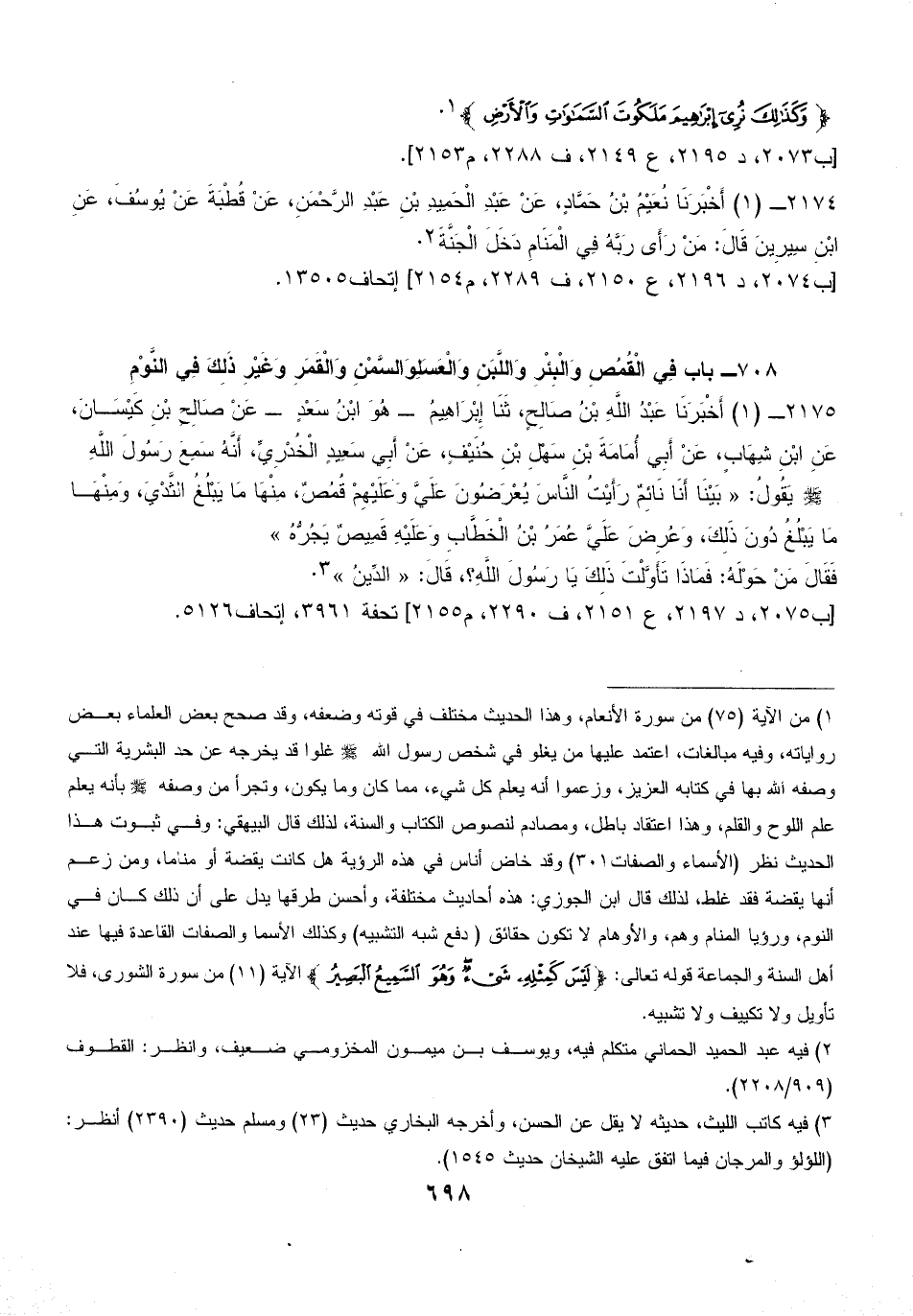 708 - باب فِي الْقُمُصِ وَالْبِئْرِ وَاللَّبَنِ وَالْعَسَلِ وَالسَّمْنِ وَالْقَمَرِ وَغَيْرِ ذَلِكَ فِي النَّوْمِ