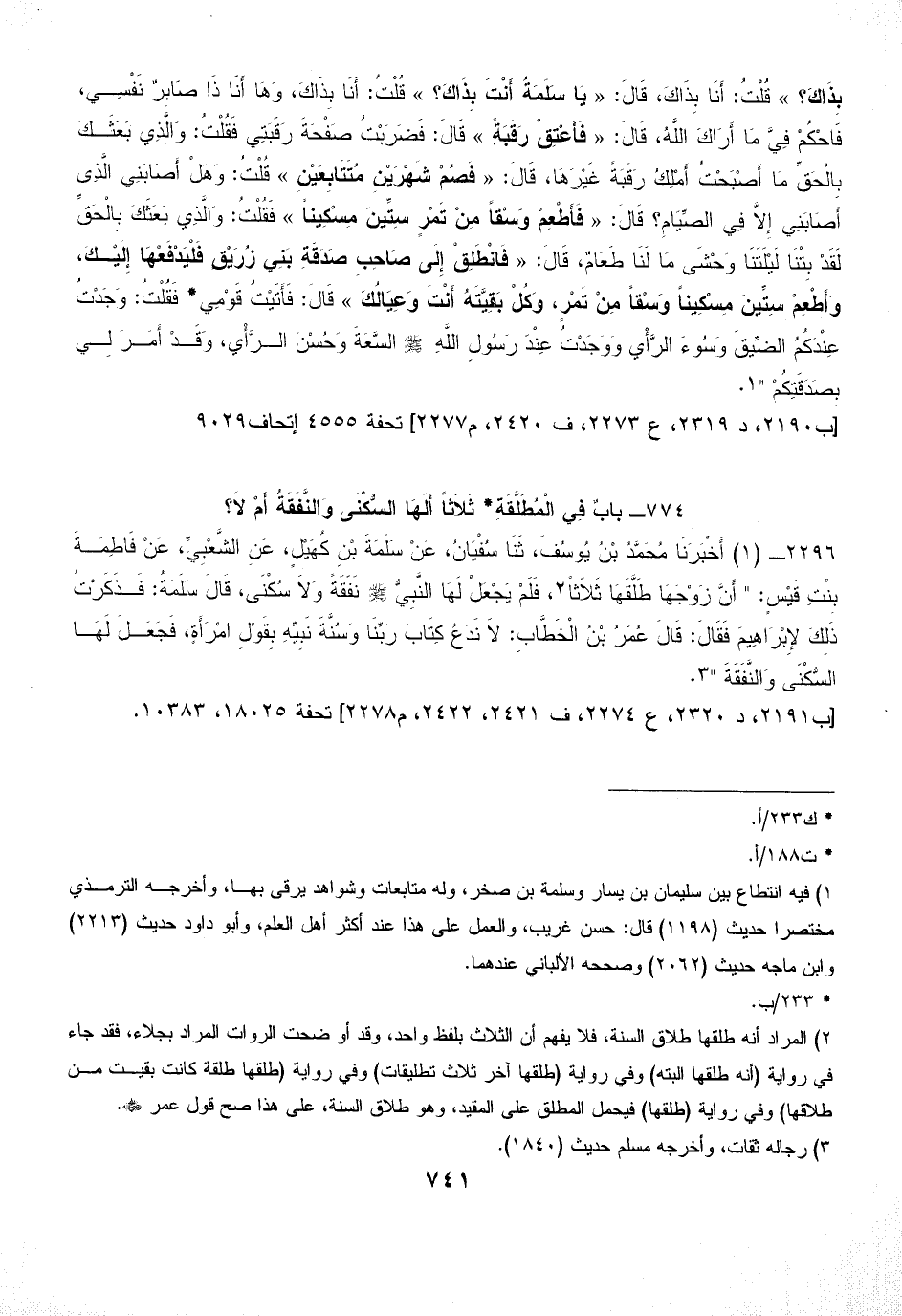 774 - بابٌ فِي الْمُطَلَّقَةِ* ثَلاَثاً أَلَهَا السُّكْنَى وَالنَّفَقَةُ أَمْ لاَ؟