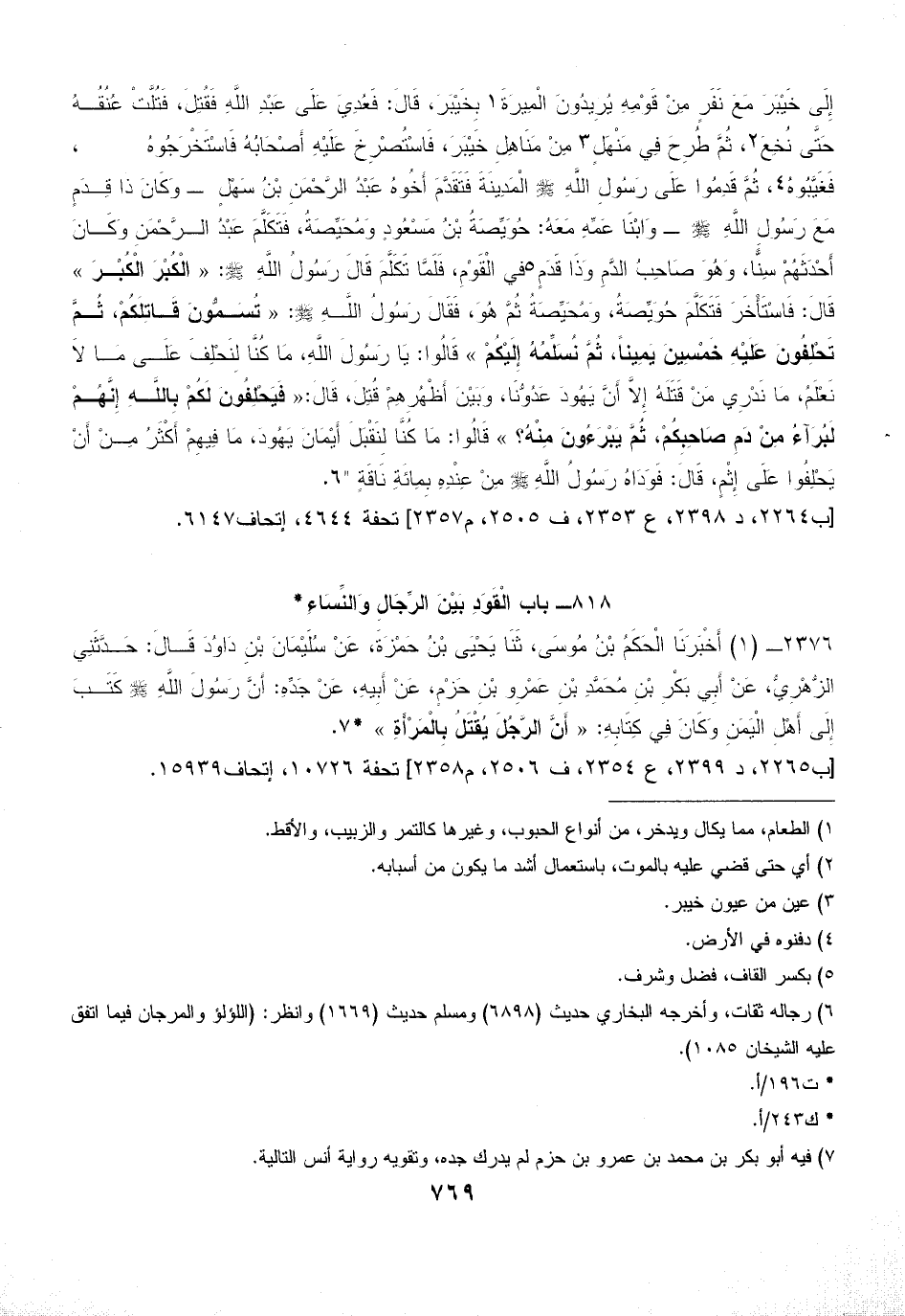 (¬6) رجاله ثقات، وأخرجه البخاري حديث (6898) ومسلم حديث (1669) وانظر: (اللؤلؤ والمرجان فيما اتفق عليه الشيخان 1085).