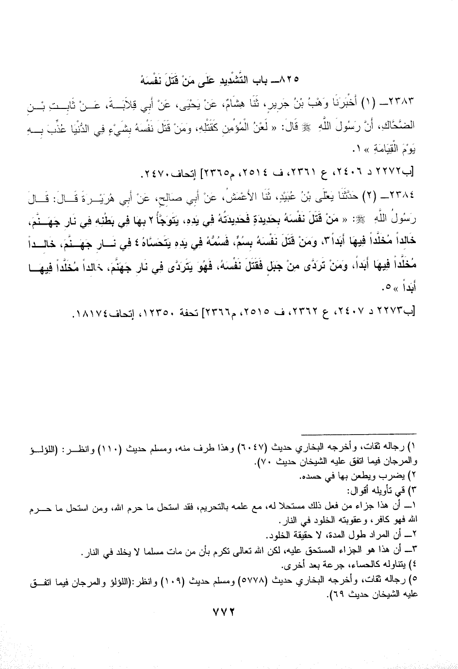 825 - باب التَّشْدِيدِ عَلَى مَنْ قَتَلَ نَفْسَهُ