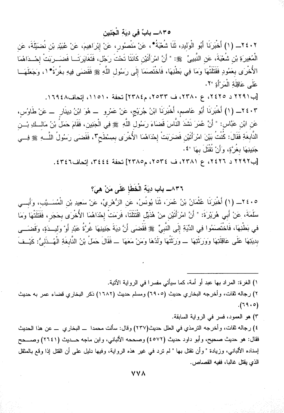 835 - بابٌ فِي دِيَةِ الْجَنِينِ