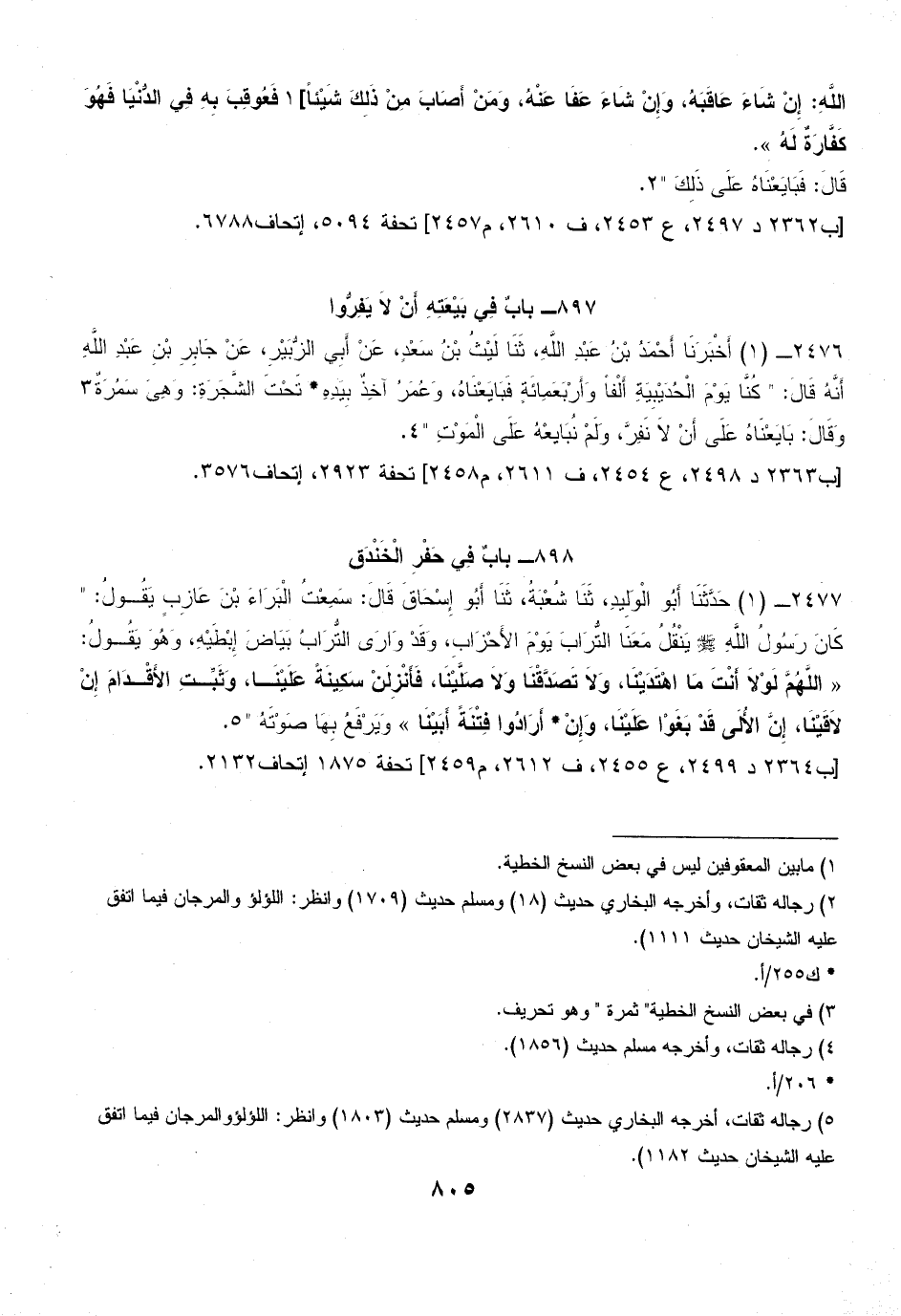 (¬5) رجاله ثقات، أخرجه البخاري حديث (2837) ومسلم حديث (1803) وانظر: اللؤلؤوالمرجان فيما اتفق عليه الشيخان حديث 1182).