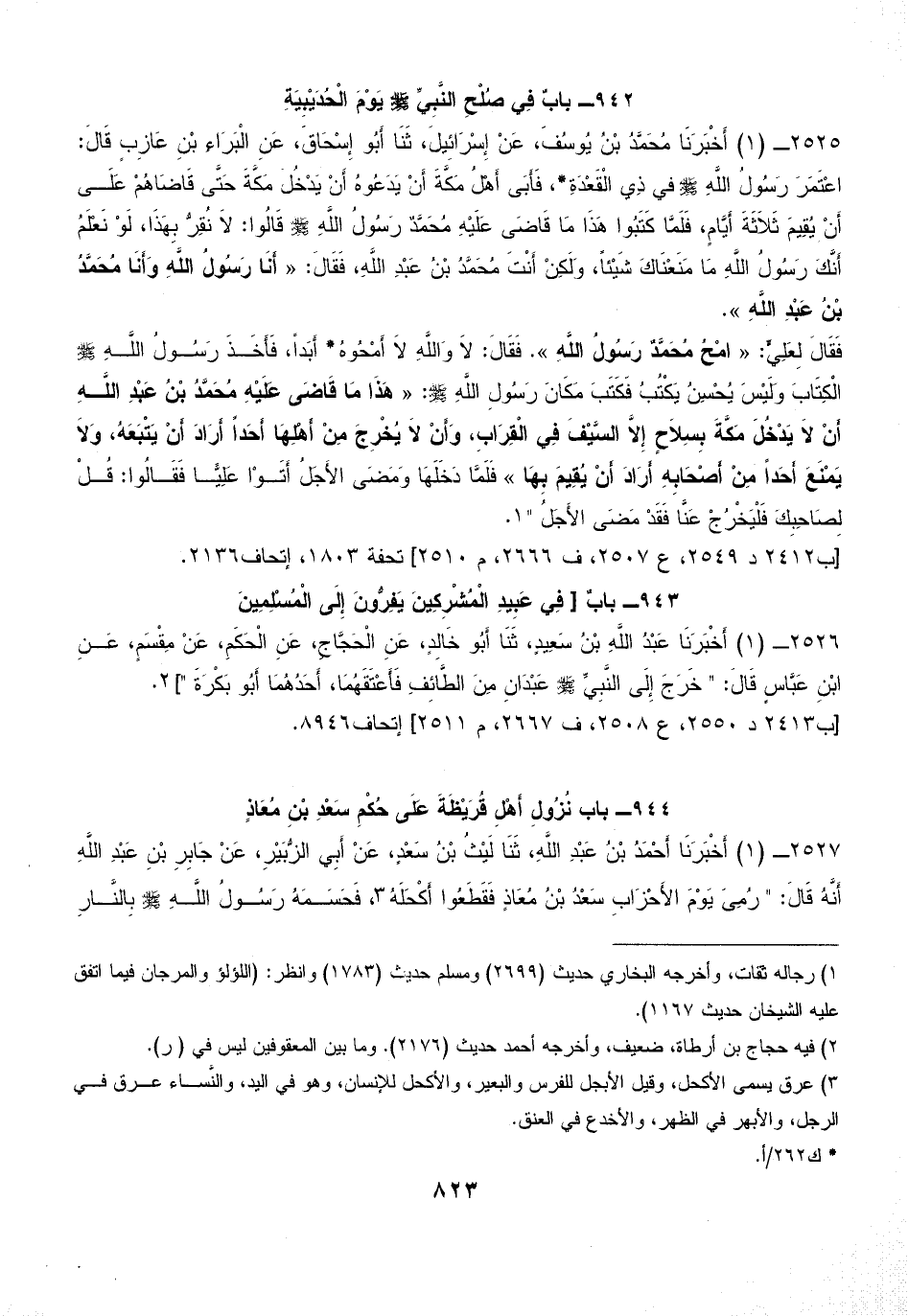 944 - بابنُزُولِ أَهْلِ قُرَيْظَةَ عَلَى حُكْمِ سَعْدِ بْنِ مُعَاذٍ