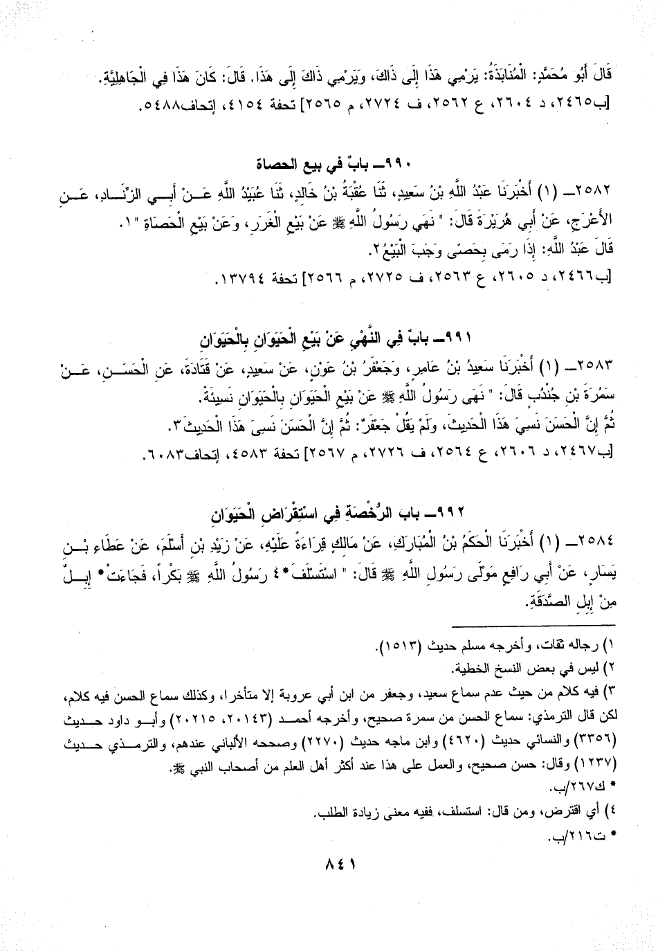 (¬3) فيه كلام من حيث عدم سماع سعيد، وجعفر من ابن أبي عروبة إلا متأخرا، وكذلك سماع الحسن فيه كلام، لكن قال الترمذي: سماع الحسن من سمرة صحيح، وأخرجه أحمد (20143، 20215) وأبو داود حديث (3356) والنسائي حديث (4620) وابن ماجه حديث (2270) وصححه الألباني عندهم، والترمذي حديث (1237) وقال: حسن صحيح، والعمل على هذا عند أكثر أهل العلم من أصحاب النبي - صلى الله عليه وسلم -.