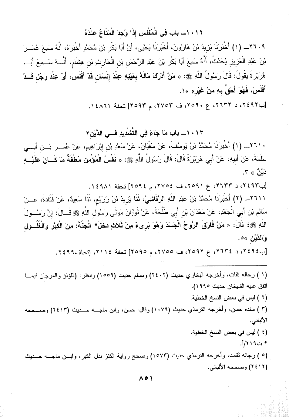 1013 - باب مَا جَاءَ فِي التَّشْدِيدِ في الدَّيْنِ (¬2)