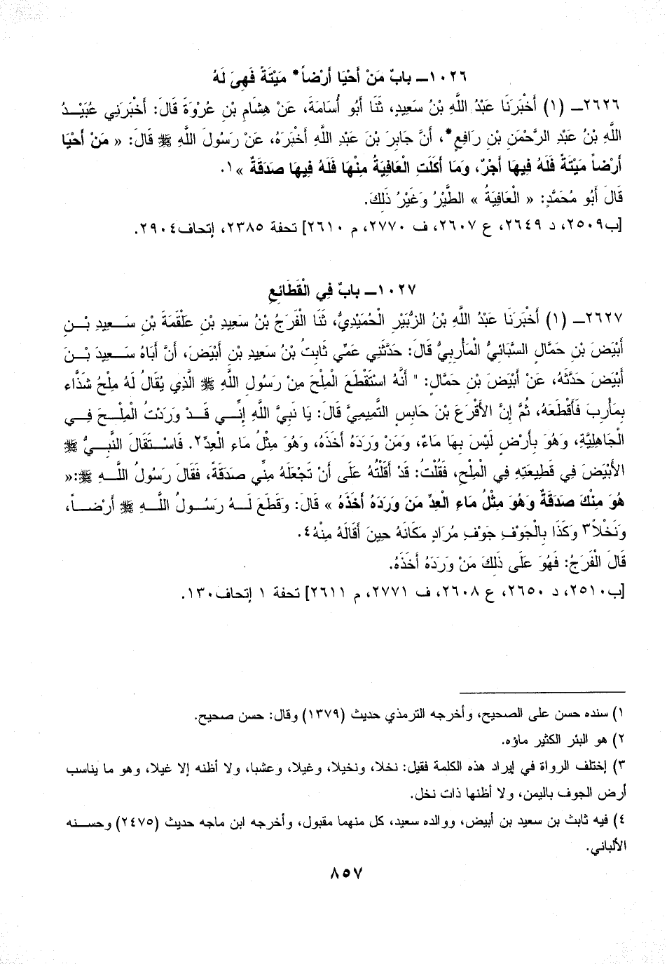 1026 - بابٌ مَنْ أَحْيَا أَرْضاً* مَيْتَةً فَهِىَ لَهُ