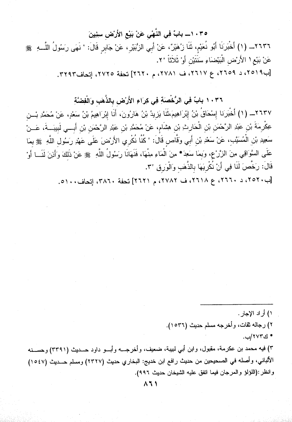 1035 - بابٌ فِي النَّهْيِ عَنْ بَيْعِ الأَرْضِ سِنِينَ