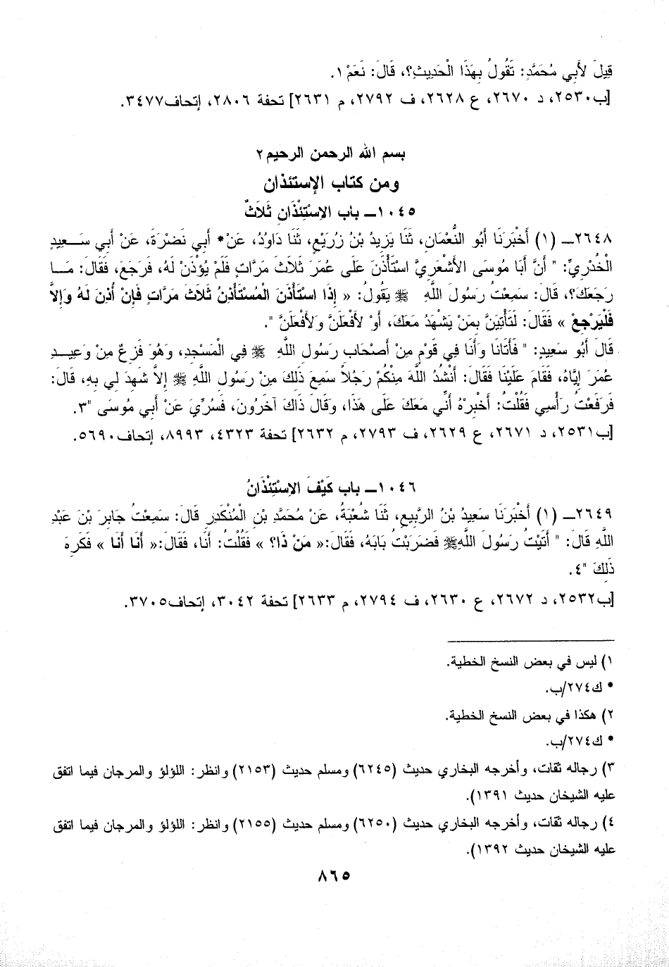 1045 - باب الاِسْتِئْذَانِ ثَلاَثٌ