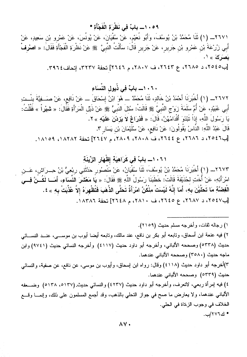 1061 - بابٌ فِي كَرَاهِيَةِ إِظْهَارِ الزِّينَةِ