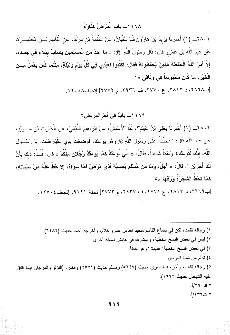 1169 - بابٌ في أَجْرِالمرِيضِ (¬2)