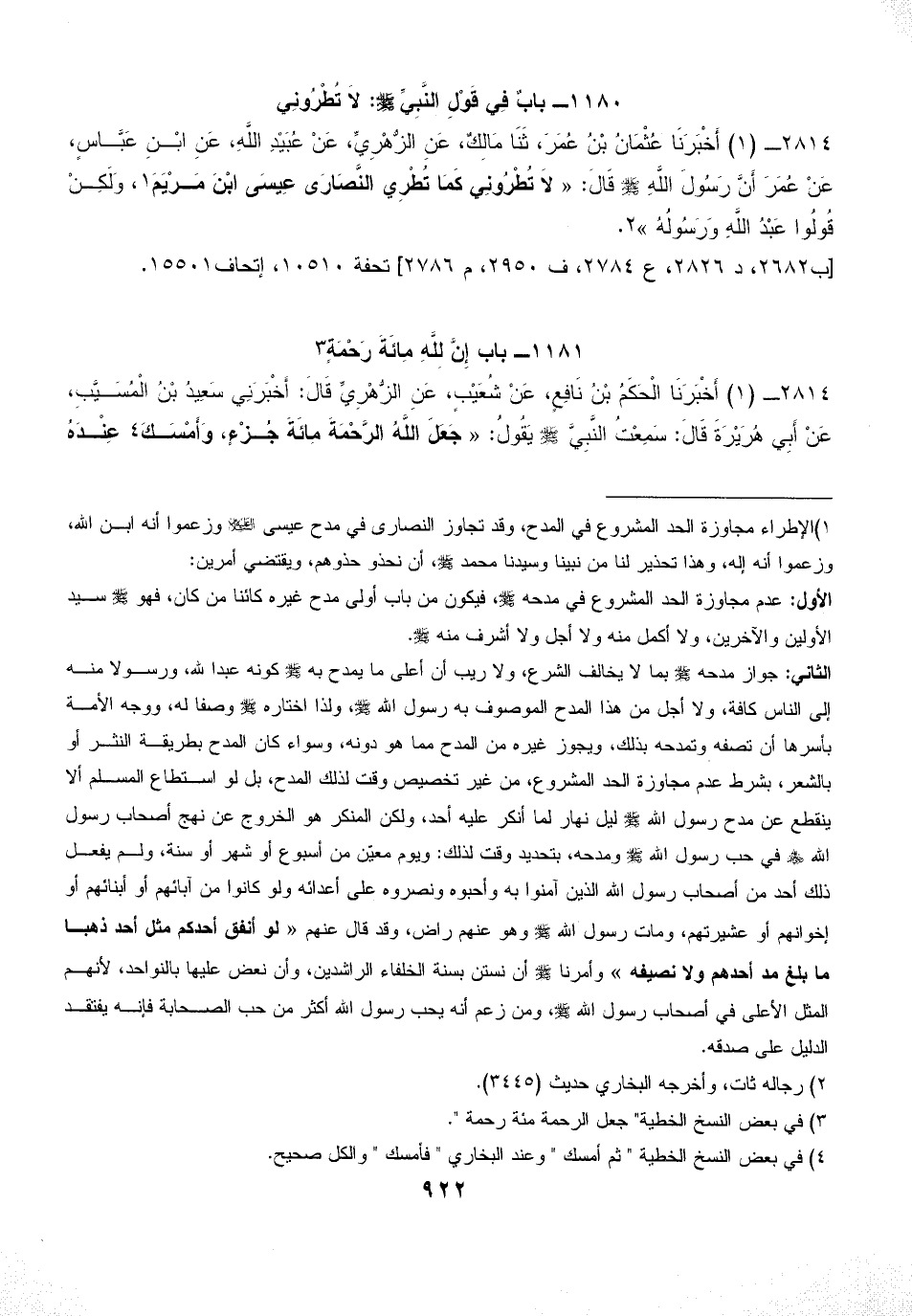 1180 - بابٌ فِي قَوْلِ النَّبِيِّ - صلى الله عليه وسلم -: لاَ تُطْرُونِي