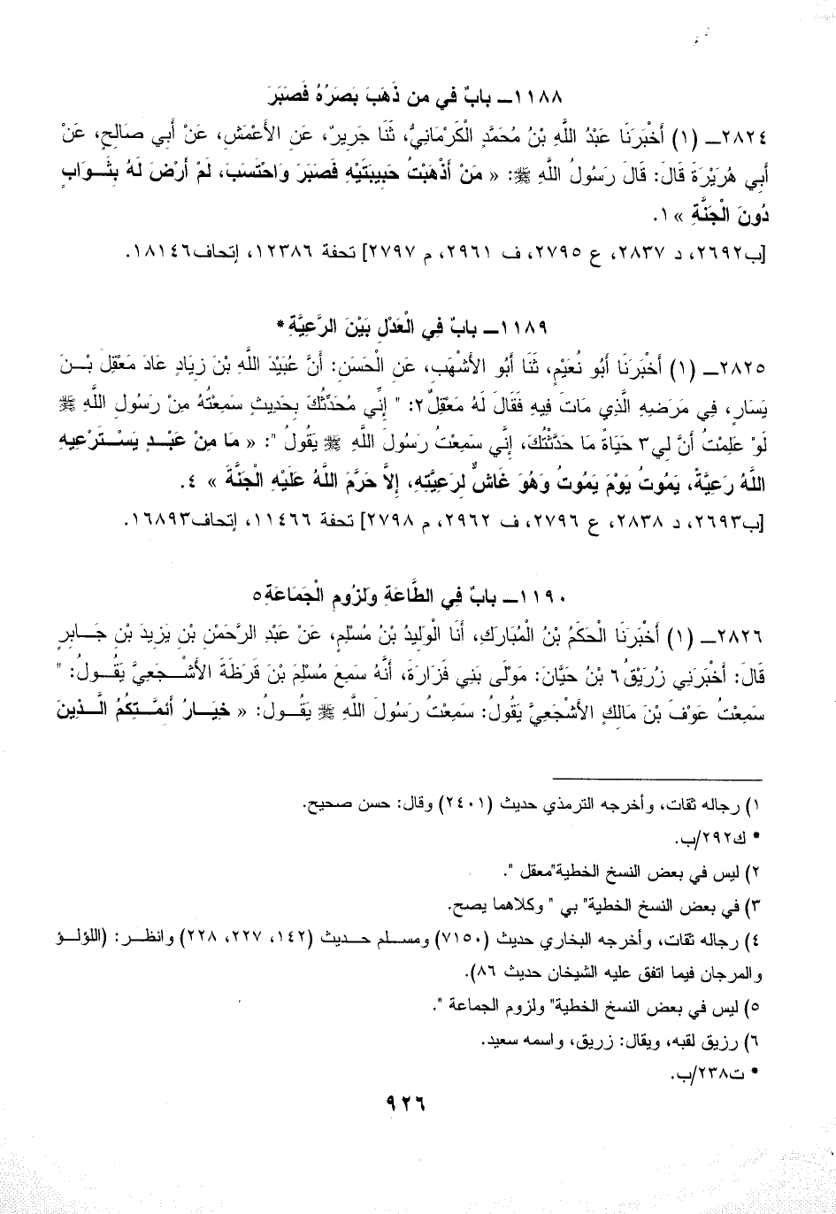 1190 - بابٌ فِي الطَّاعَةِ وَلزُومِ الْجَمَاعَةِ (¬5)