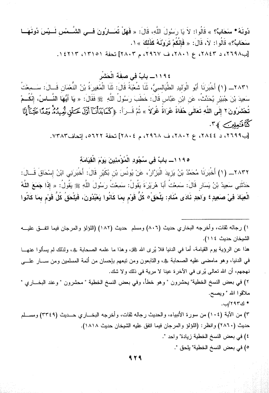 1195 - بابٌ فِي سُجُودِ الْمُؤْمِنِينَ يَوْمَ الْقِيَامَةِ