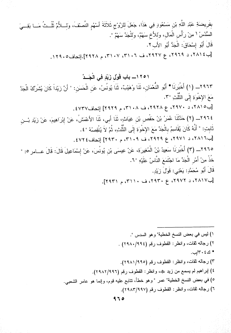2963 - (1) أَخْبَرَنَا* أَبُو النُّعْمَانِ، ثَنَا وُهَيْبٌ، ثَنَا يُونُسُ، عَنِ الْحَسَنِ: " أَنَّ زَيْداً كَانَ يُشَرِّكُ الْجَدَّ مَعَ الإِخْوَةِ إِلَى الثُّلُثِ " (¬3).