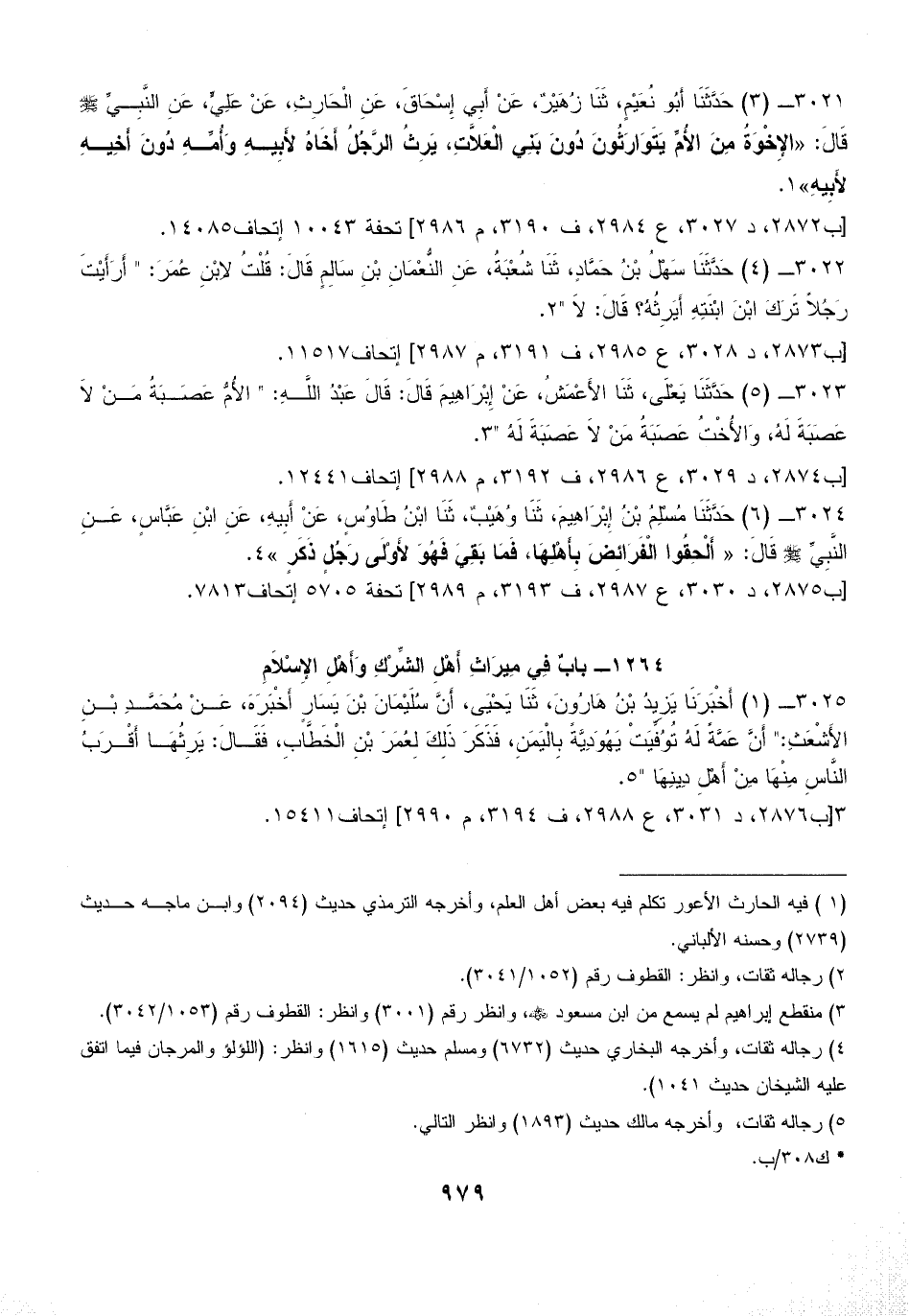 3021 - (3) حَدَّثَنَا أَبُو نُعَيْمٍ، ثَنَا زُهَيْرٌ، عَنْ أَبِي إِسْحَاقَ، عَنِ الْحَارِثِ، عَنْ عَلِيٍّ، عَنِ النَّبِيِّ - صلى الله عليه وسلم - قَالَ: «الإِخْوَةُ مِنَ الأُمِّ يَتَوَارَثُونَ دُونَ بَنِي الْعَلاَّتِ، يَرِثُ الرَّجُلُ أَخَاهُ لأَبِيهِ وَأُمِّهِ دُونَ أَخِيهِ لأَبِيهِ» (¬1).