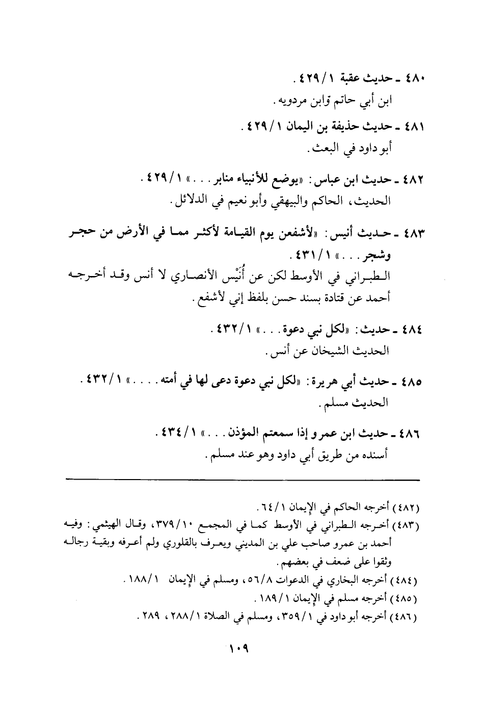 485 - حديث أبي هريرة: "لكل نبي دعوة دعى لها في أمته .... " 1/ 432.