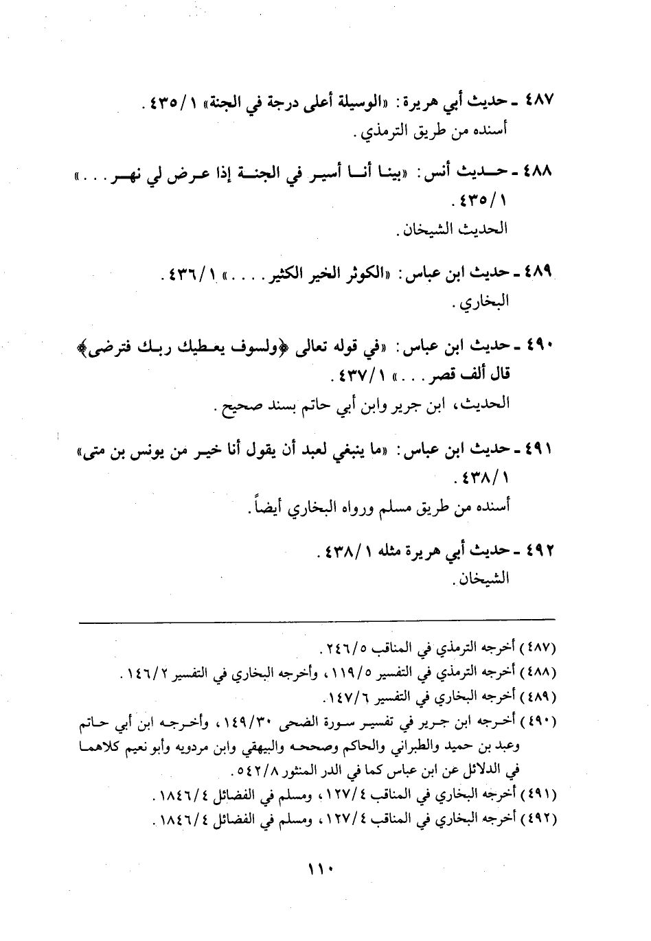 489 - حديث ابن عباس: "الكوثر الخير الكثير .... " 1/ 436.