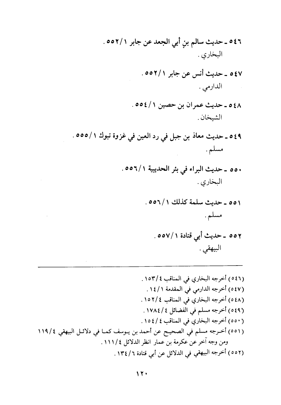 550 - حديث البراء في بئر الحديبية 1/ 556.