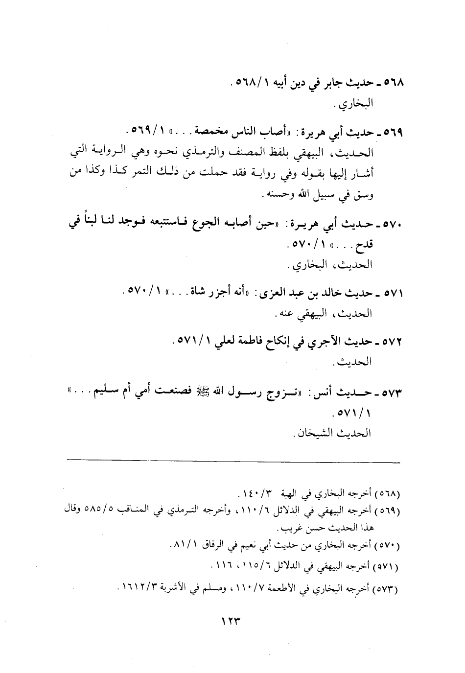 573 - حديث أنس: "تزوج رسول الله - صلى الله عليه وسلم - فصنعت أمي أم سليم ... " 1/ 571.
