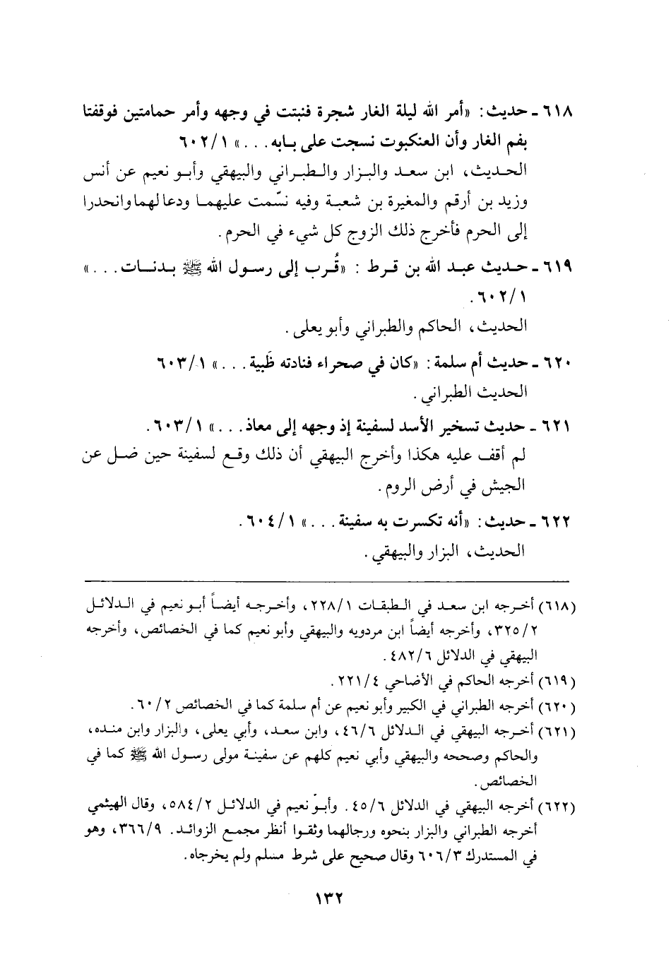 618 - حديث: "أمر الله ليلة الغار شجرة فنبتت في وجهه وأمر حمامتين فوقفتا بفم الغار وأن العنكبوت نسجت على بابه ... " 1/ 602