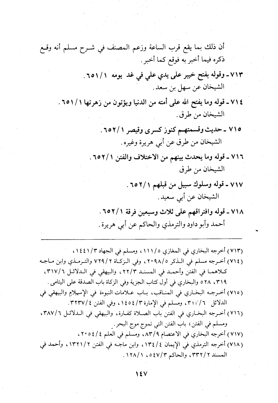 715 - حديث وقسمتهم كنوز كسرى وقيصر 1/ 652.