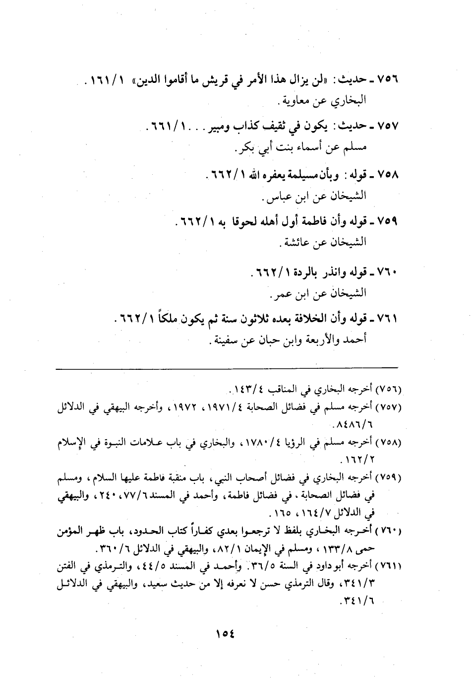 756 - حديث: "لن يزال هذا الأمر في قريش ما أقاموا الدين" 1/ 161.