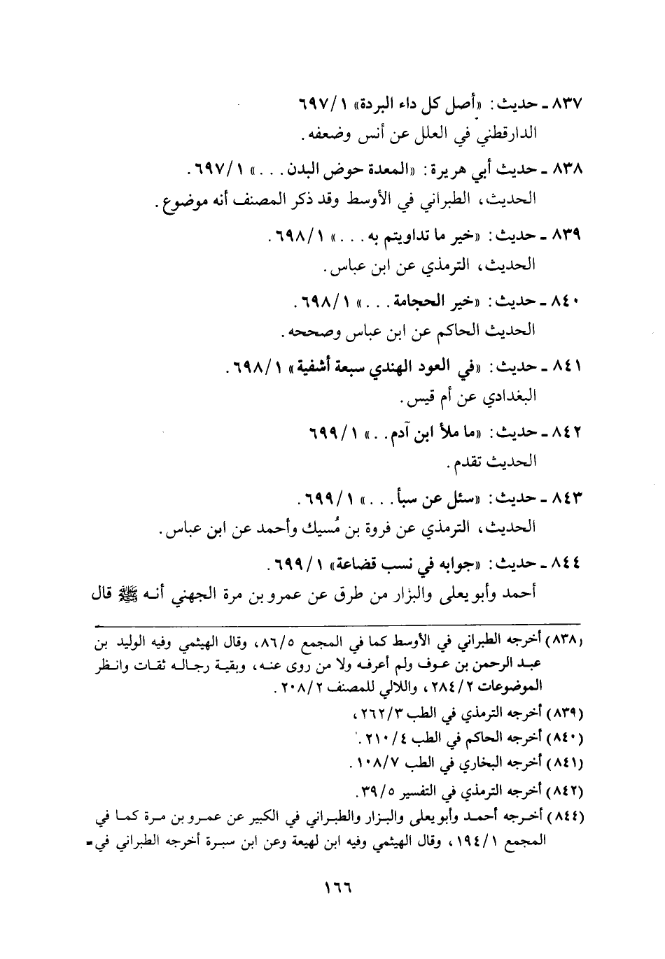 837 - حديث: "أصل كل داء البردة" 1/ 697