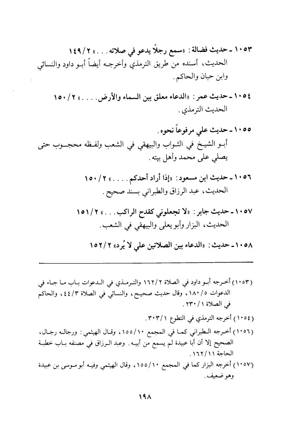 1053 - حديث فضالة: "سمع رجلًا يدعو في صلاته ... " 2/ 149