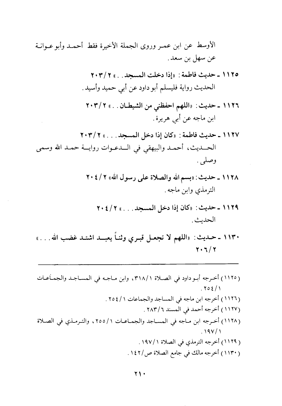 1127 - حديث فاطمة: "كان إذا دخل المسجد ... " 2/ 203