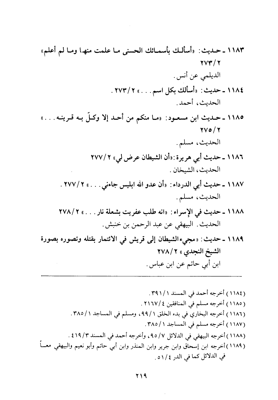 1187 - حديث أبي الدرداء: "أن عدو الله إبليس جاءني ... " 2/ 277.