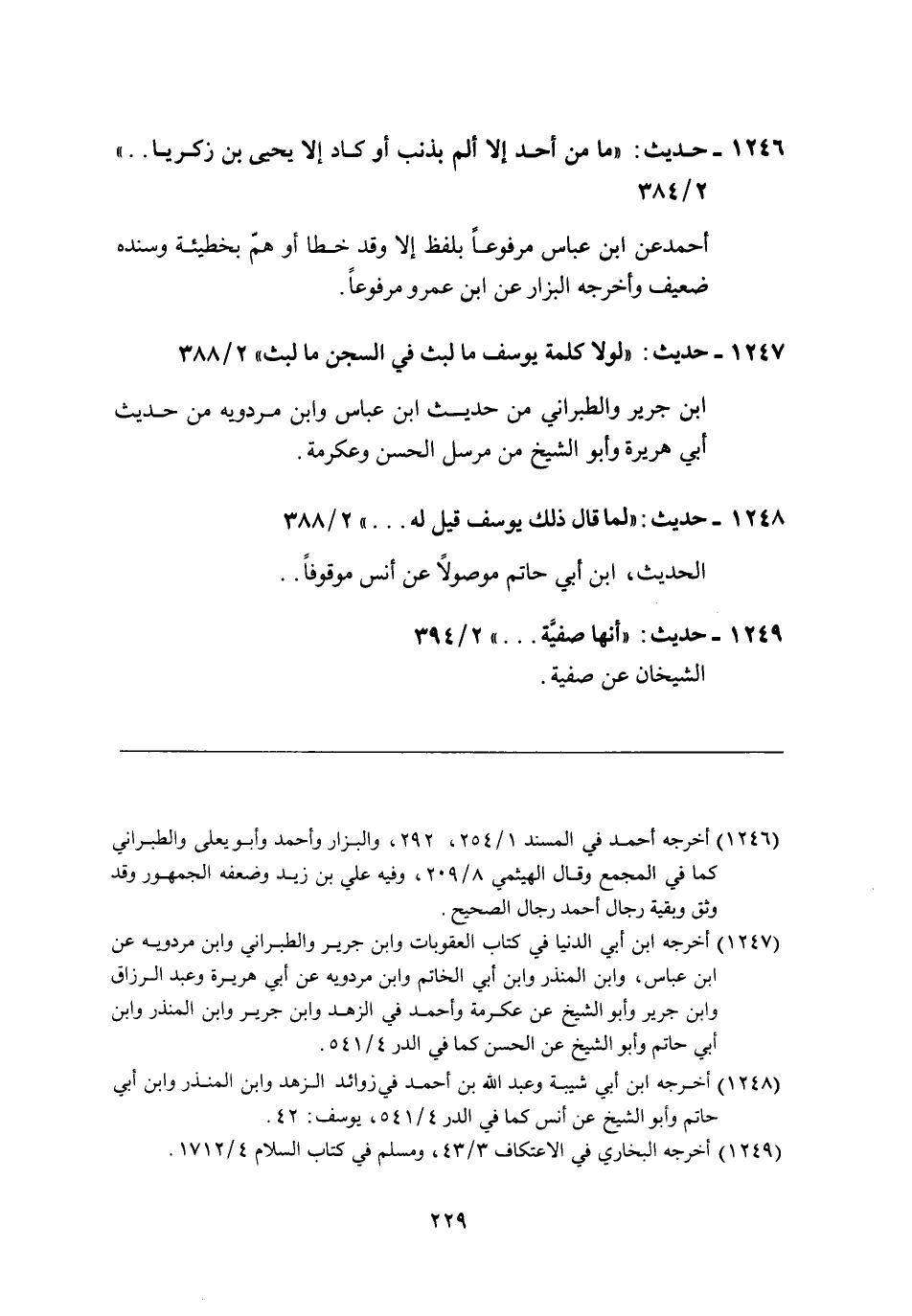 1246 - حديث: "ما من أحد إلا ألم بذنب أو كاد إلا يحيى بن زكريا .. " 2/ 384