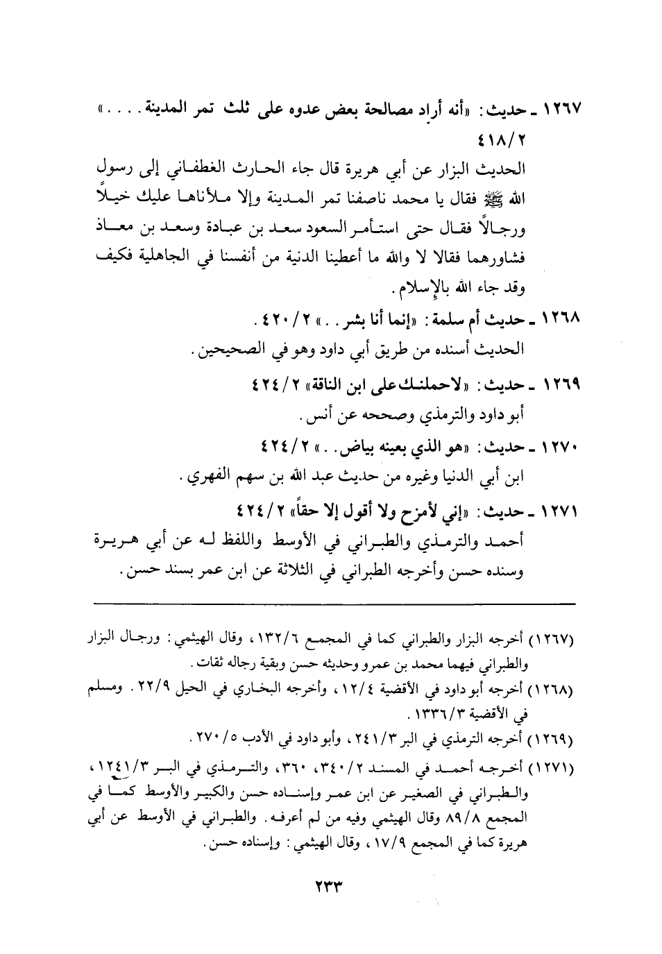 1267 - حديث: "أنه أراد مصالحة بعض عدوه على ثلث تمر المدينة .... " 2/ 418