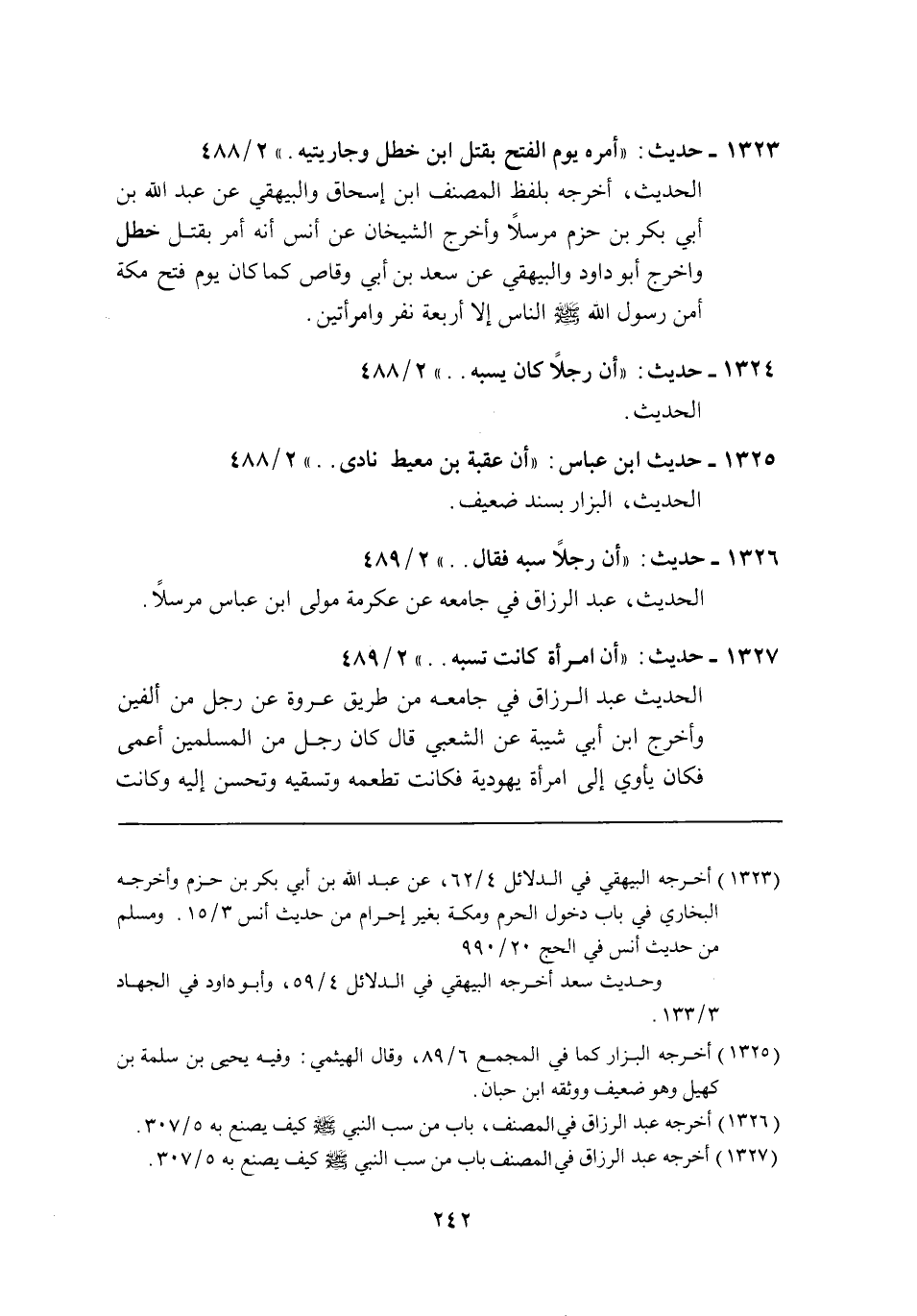 1323 - حديث: "أمره يوم الفتح بقتل ابن خطل وجاريتيه." 2/ 488