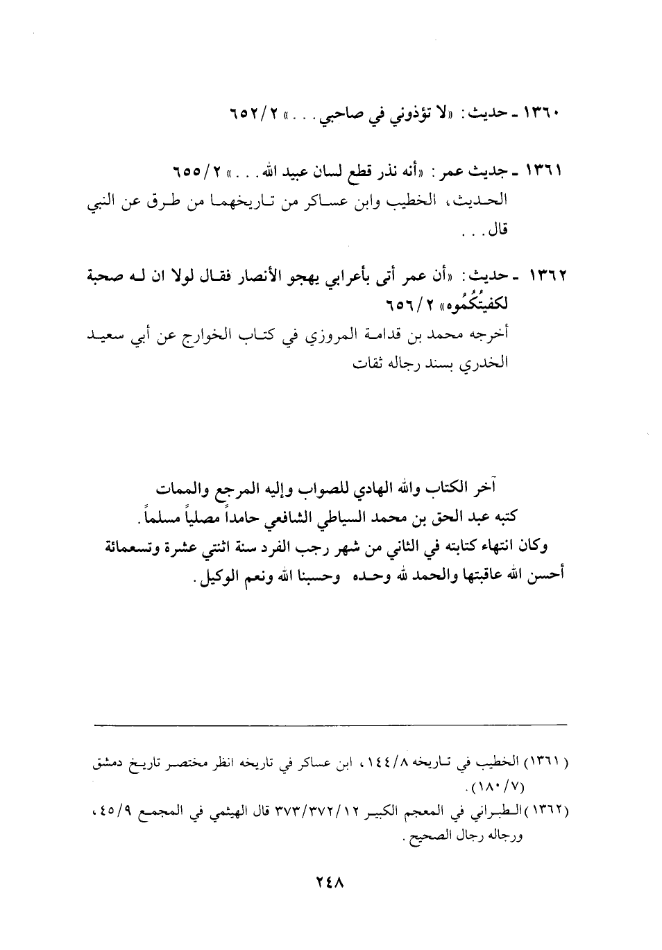 1361 - حديث عمر: "أنه نذر قطع لسان عبيد الله ... " 2/ 655