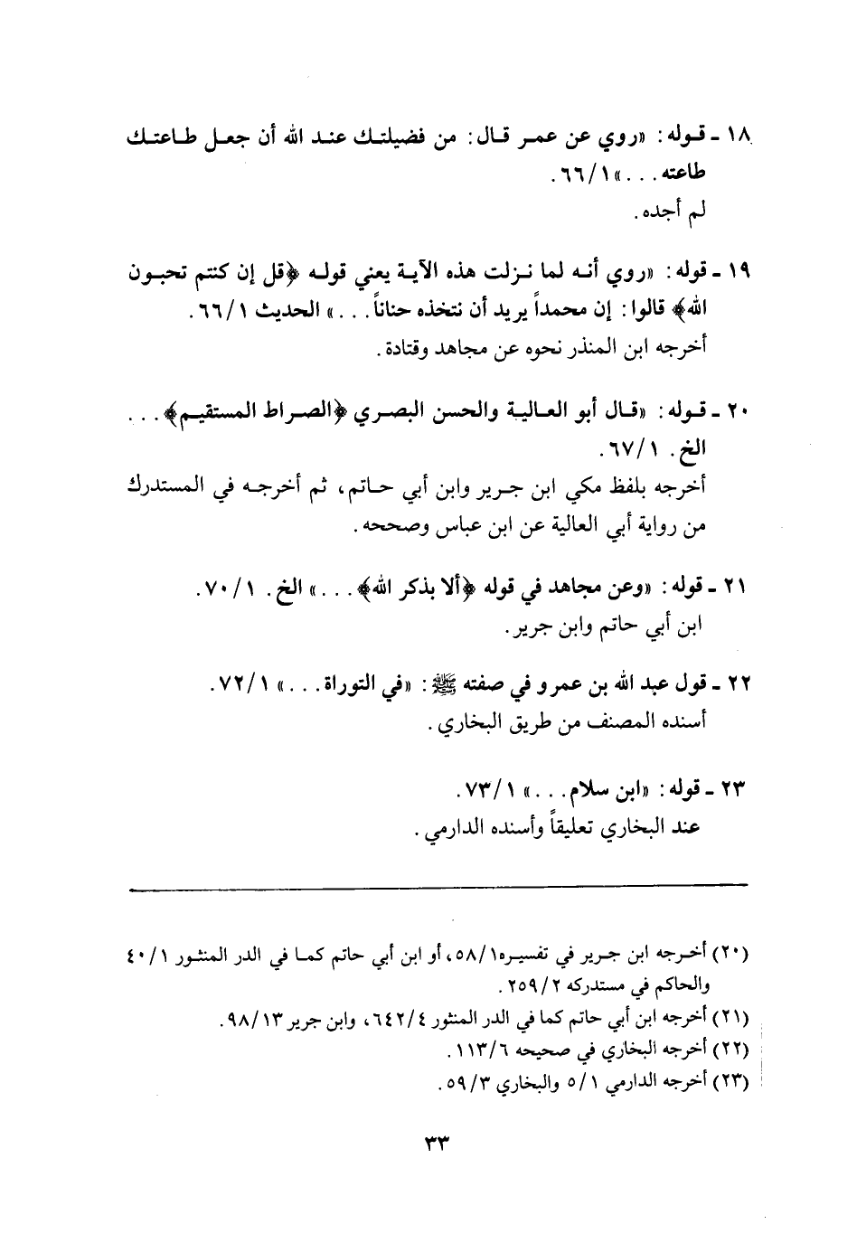 18 - قوله: "روي عن عمر قال: من فضيلتك عند الله أن جعل طاعتك طاعته ... " 1/ 66.