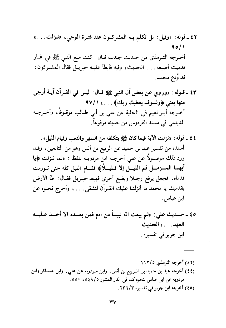42 - قوله: "وقيل: بل تكلم به المشركون عند فترة الوحي، فنزلت ... " 1/ 95.