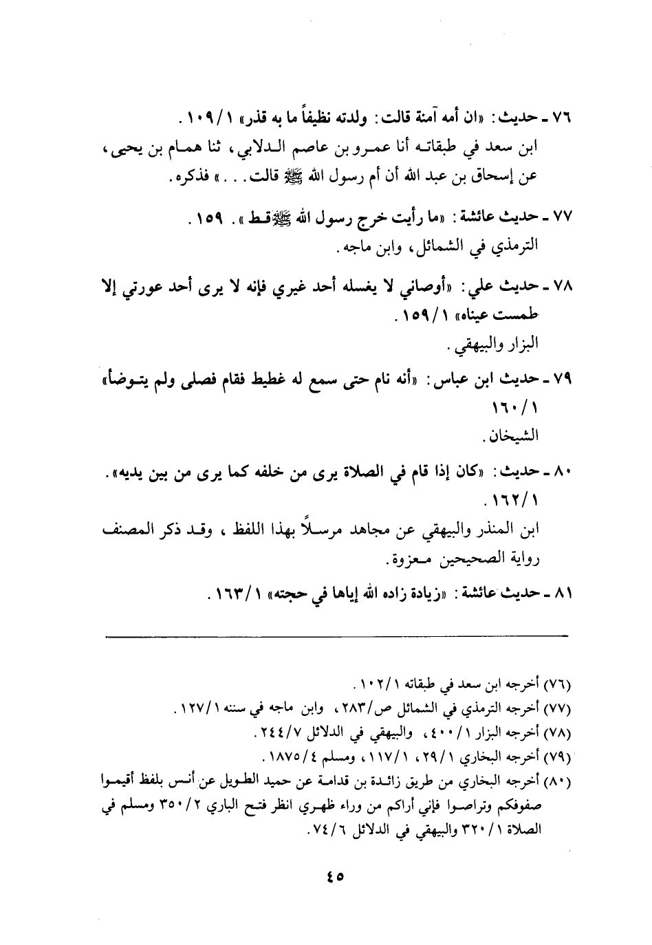 80 - حديث: "كان إذا قام في الصلاة يرى من خلفه كما يرى من بين يديه". 1/ 162.