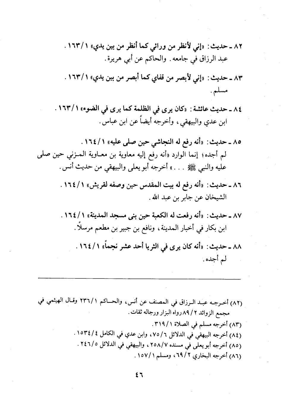84 - حديث عائشة: "كان يرى في الظلمة كما يرى في الضوء" 1/ 163.