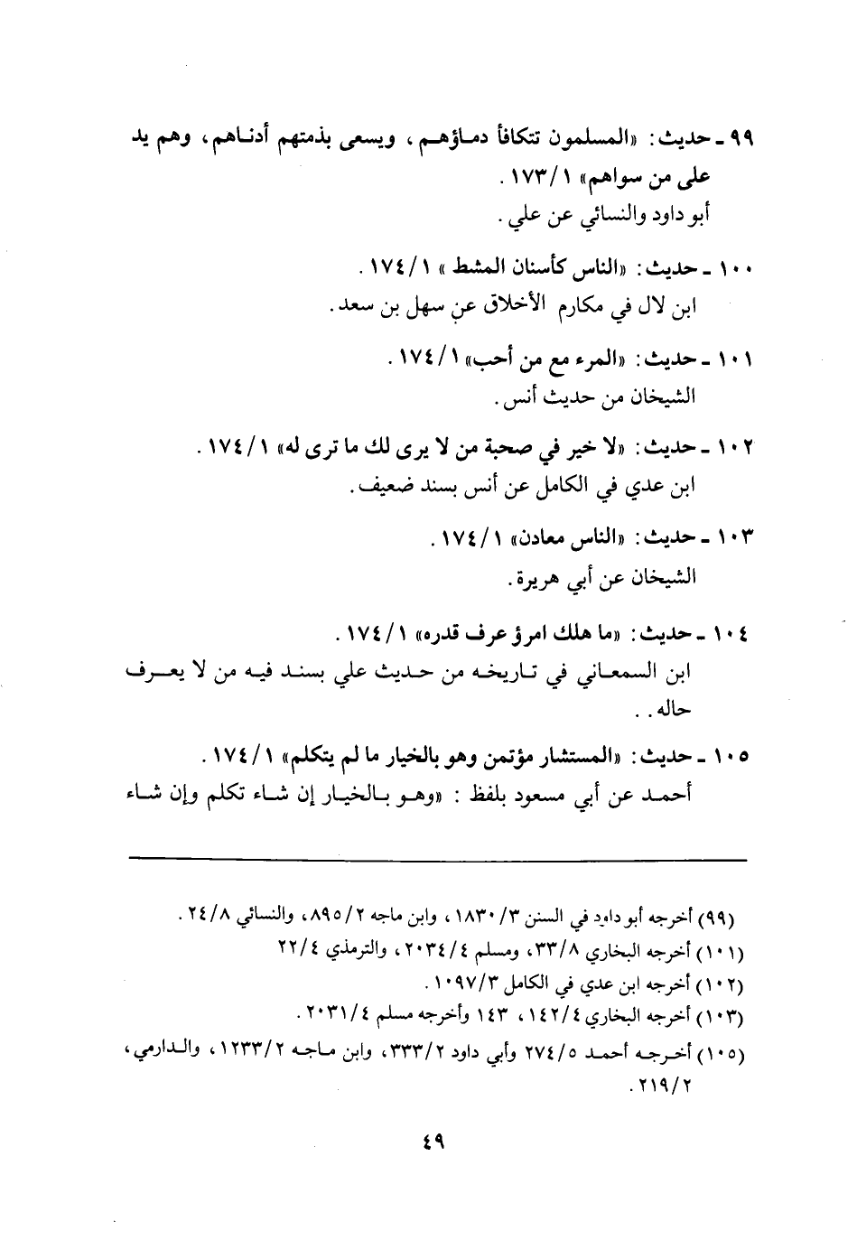 100 - حديث: "الناس كأسنان المشط" 1/ 174.