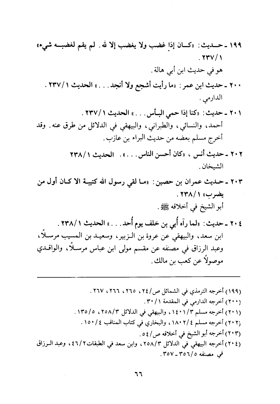 199 - حديث: "كان إذا غضب ولا يغضب إلا لله. لم يقم لغضبه شيء" 1/ 237.